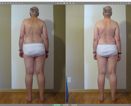 Ennek az esettanulmánynak a fókusza a gerinc oldalhajlatainak (lateral flexion), másnéven a gerincferdülésnek a változtatását, változtathatóságát mutatja be a TestSzobrászat 12 kezelése kapcsán. A baloldali kép az 1. kezelés előtt, míg a jobb oldali kép a 12. kezelés után készült. A képen látható vendéget Zoltánnak fogom nevezni, ami nem a vendég igazi neve.